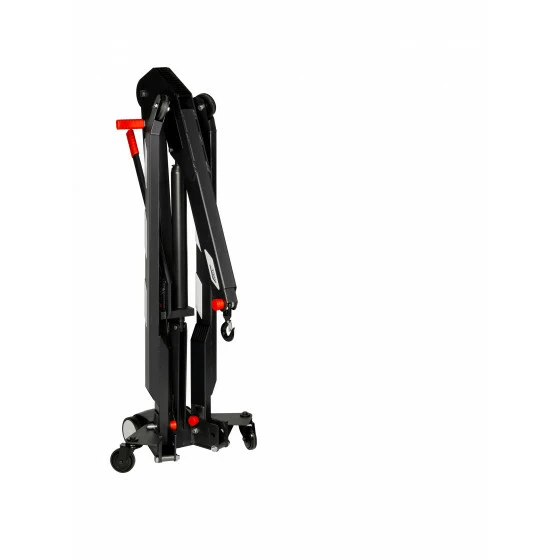 Grue hydraulique permettant à l’utilisateur d’accompagner le mouvement. En position repliée ou déployée, elle pivote facilement sur elle-même grâce à la position centrale des roues.