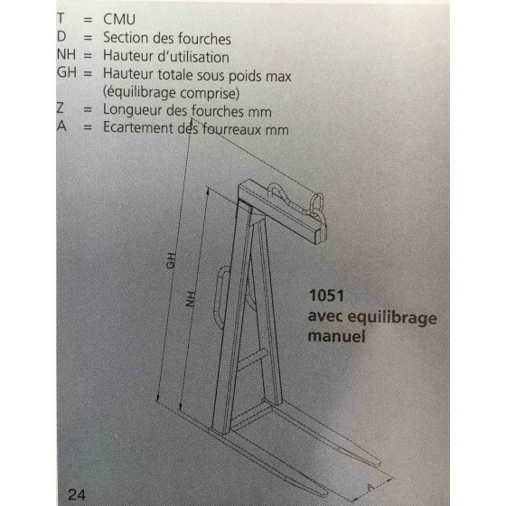 Longueur des fourches Z : 1000 mm