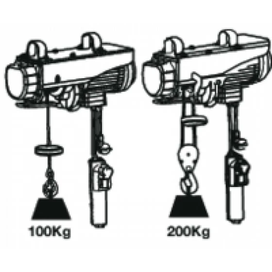 | 10802 | 400 kg | 200 kg | 5m/min | 10m/min | 6m | 12m | 950W | 230V-50Hz | 3,8mm | 12m | 430x145x200 mm | 17,2 kg |