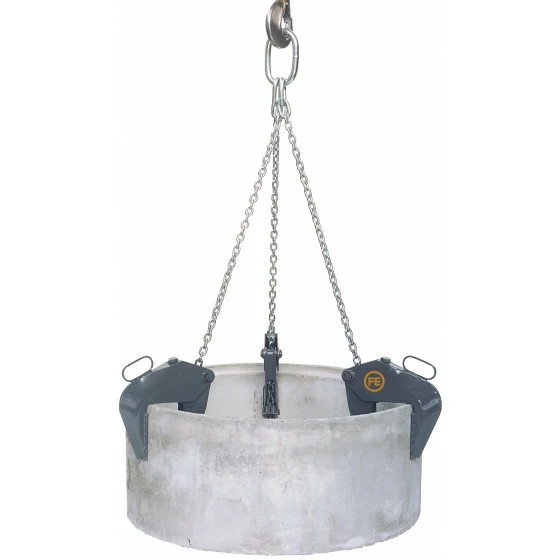 Construction en acier traité résistant à la torsion, pour le transport et le déplacement vertical de tuyaux. Plage de serrage réglable simplement et rapidement au moyen d’une broche filetée chaînes galvanisées haute résistance, conformément à DIN 5688.8.